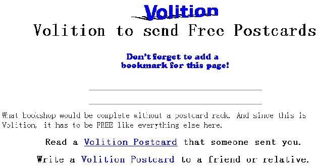 怎么样?现在你也可以马上给朋友发一张免费贺卡了吧。当然,网上类似的免费“邮局”还有很多。另外一个非常棒的地方是Volition: