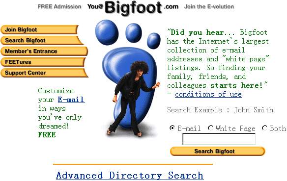 1.http:∥www.bigfoot.com 在成千上万的条目中查找特定的人名、E-mail地址及Web网址。