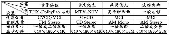 因此,针对不同的需要,你可以使用不同的方案以达到最佳播放效果。经比较测试,列出几种常用的方案以供参考,见表一。