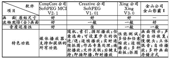 下面对CVCD和其它VCD播放软件作一主观比较,见表二。