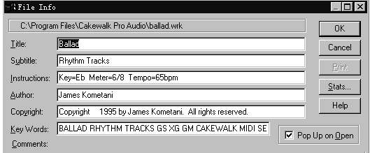 Pop Up On Open复选框如果被选中,则打开该MIDI文件时自动显示注释窗。
