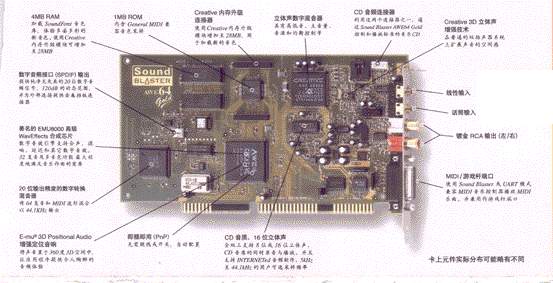 Sound Blaster AWE64 Gold是新加坡创新科技有限公司最新推出的高保真PC音频卡。同上一代AWE32相比,其性能有了明显的改进,正如其名字所示——AWE64 Gold支持64复音。