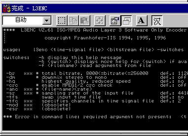 L3ENC 音频输入文件 MP3输出文件[开关参数1][开关参数2][...]]]]