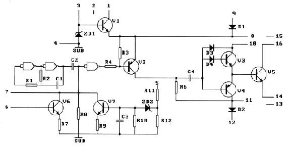 由图2可看出,STK408H内含振荡器,由非门电路和R1、C1等组成。经C2输出、U3缓冲、V2放大的振荡方式进入由V3、V4组成的推挽放大器进行电压放大,最后经V5进行电流放大。V5导通期间,+300V直流电压经L1、V5的c-e结和R615到地,这时,电能转换为磁能贮存在L1,L1的极性为上正下负,L2所激发的电压极性为上正下负,供给STK7408H的9脚,L3所激发的电极压极性为上正下负,供给STK408H的12脚。STK408H的9脚电压经D1加至其8脚,而8脚外接C601,C610起平滑、贮存电能作用。STK7408H的12脚电压经D2加至11脚,11脚外接电容C611,C611起平滑电压、贮存电能作用。故8、9脚电位为正,11、12脚电压为负。10脚经限流电阻R613接至8脚,6脚是过电流保护脚,当电流超过限值时,6脚电位上升至V6导通,C2输出的方波经R7至地,幅度减少,V5的导通时间减少,输出电流减小,5脚是过电压保护脚,当输出电压升高时,由R11、R12组成的分压电路中R12两端电压上升,达到一定电压值时,ZD2被击穿,V7导通,C2输出的方波经R9至地,幅度减小,V5的导通时间减少,输出电压下降。V5截止时间,L1的极性为下正上负,截止瞬间产生很高的反电压(约为Ucc的5—7倍),此电压经D602、R617泄放可避免击穿大功率管V5。此时L2的极性为下正上负,L3的极为下正上负。由于D1、D2的隔离及C610、C611的贮能作用,8、10脚保持正电位,11脚保持负电位,保证了STK7408H内部各电路部分的供电。贮存在L1的磁能通过L4、L5向负载释放,D651、D652是高频整流二极管,C651、C652是滤波电容,L651、L652是高频扼流线圈,用于滤除掉电源中丰富的谐波成分。当V5又导通时,就完成了一个振荡周期,以后重复上述过程,而且负载的功率较小,故T601的体积比T602的体积小。