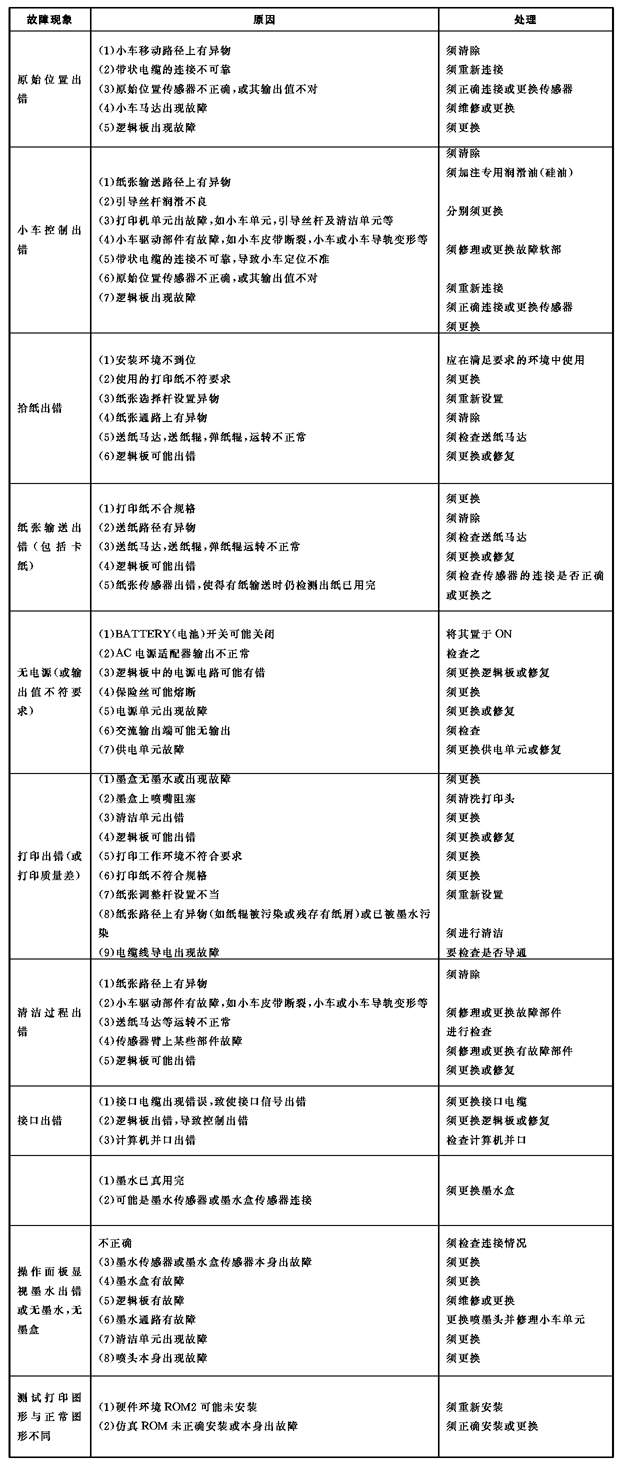 就喷墨打印机而言,其常见故障原因及解决措施如表一。