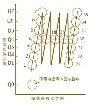 当一列字符打印完后,喷墨头以一定的速度沿水平方向由左向右移动一列距离,依次下去,即可印刷出一个字符以至一行字符。