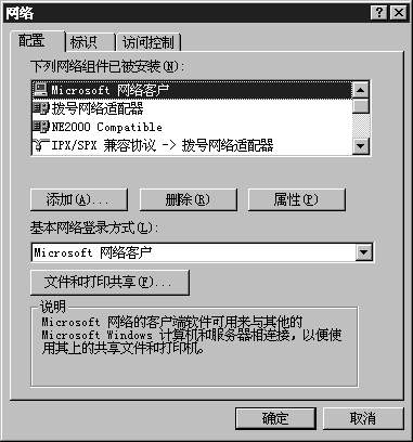Microsoft网络的文件和打印机共享:提供了共享Windows NT和Windows for Workgruops文件和打印机的能力。