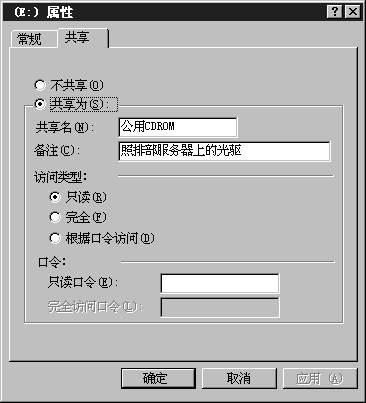 在上图“访问类型”中,可根据共享资源的情况来设置其它计算机对它的访问权限,并可以在“口令”中设置访问口令。