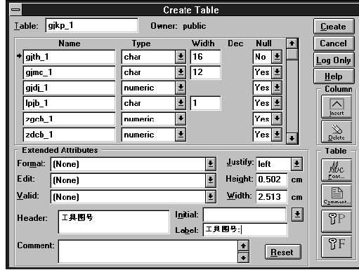 值得注意的是,最好为表定义题头(Header)和标签(Label) ,对于已建好的表可使用Alter Table工具栏来增加或改变题头和标签。