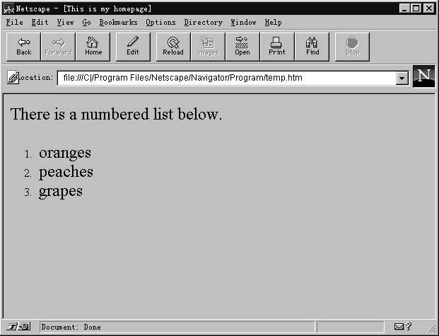 序号列表和无序号列表的用法基本相同,只是把<UL></UL>换成<OL></OL>就可以了。其它的列表项前也同样使用<LI>。下面例子的实际效果见图6。