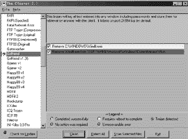 当我重新启动电脑打开The Cleaner 进行检测后,已经找不到Girlfriend了,你看清除一个特洛伊木马就这么轻松简单,只要点几下鼠标就完事。在这里需要说明的是在清除特洛伊木马前,需将其它杀毒软件关闭,以避免冲突。当你的电脑中发现多个特洛伊木马时,可以将它们全部清除再重新启动而不用清一个重启动一次。