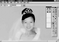5.选取调色工具,先调整脸部整体的颜色及亮度,使之与模特的肤色相吻合,再分别对眉、眼、唇进行修饰,进行电脑化妆。如果对某部分的颜色不满意,可以用裁减工具选取后仔细调整(见图6)。