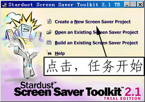 制作屏幕保护程序的软件很多,有些非常专业,可以制作动画屏保,当然操作上也比较复杂(如Anmated Screen 3.10),下载地址为http://www.sunv.com/newhua/down/ascrstp.zip。而有些软件就非常简单易用,只需选择几个图片就可以了(如《电脑报》22期15版介绍的Screen Saver Toolbox 2.1),下载地址为 http://www.sunv.com/newhua/down。这里,给大家介绍一个使用非常简单,但又可以制作出专业级效果的屏幕保护制作工具——Stardust Screen Saver Toolkit TE(简称SST)。SST可以支持多种格式的图像文件,支持AVI动画格式,可以添加背景音乐、标注文字、制作用于发表的屏幕保护安装程序等。用SST制作屏保是简单的向导式操作,非常方便。