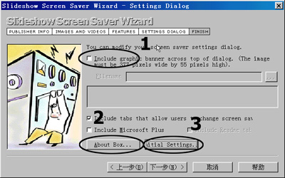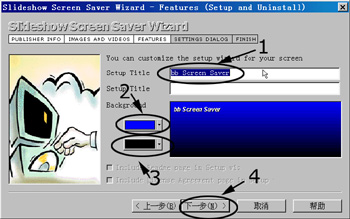●选择1,可以为屏保的安装程序对话框加入一个装饰图片。可以不选择。