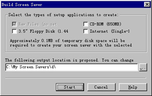 点击界面的第三项“Build an Existing Screen Saver project”,打开保存的半成品屏保文件,进入图14所示的界面。在下面的文本窗口中设置屏保程序保存的路径,点击按钮[Start],即可生成Windows可以使用的屏保文件,将该文件直接拷贝到Windows所在目录的System子目录下,然后在显示属性中设置成当前的屏保即可。