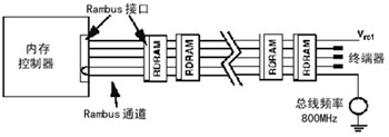 结构上可以划分为:(1)Rambus通道(The Rambus Channel);(2)Rambus DRAM;(3)内存控制器(The Memory Controller)。(见图2)