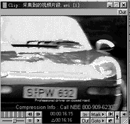 (7)选取菜单Make\Make movie,作有关设置后生成以.avi格式保存的影片,如图7所示,如果有条件,还可以联机将生成的影片录制到录像带上。对生成的影片你可以播放着看看,在这辆红色汽车开过来,车牌号最清晰时,画面将停一段时间,这个时间就是您先前设置的需要定格的时间,之后画面继续播放。