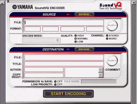 VQF音乐的播放和制作 》 《电脑报》1999年39期《软件世界》介绍了VQF音乐格式,并比较了几种播放工具。目前,这种格式的音乐还比较少,但由于压缩比很大,许多收集音乐的朋友可以尝试使用该种音乐格式保存音乐。 图1就是YAMAHA出的VQF播放器,叫Sound VQ Player,它的样式比WinAmp稍微逊色了一点,下面我来介绍一下它的主要具体使用技巧。首先点击“Set”键,出现图2所示的设置窗口,其中:1主体设置;2代理服务器设置;3网络设置;4播放精确设置;5浏览器设置。再点击“Open”打开文件,在这里你既可以播放本地硬盘上的音乐,也可以听网上的音乐,使用比较简单。 YAMAHA的压缩器(YAMAHA Sound VQ ENCODER)可以说是很漂亮的了,其外观极具立体感(图3),当然功能也很多。它可以把WAV、PCM、AIF、AIFF格式的文件全部压缩成VQF格式的文件,而且压缩比特别高,音质也不错。我在自己的赛扬机器上把同一张CD分别用MP3和VQF进行压缩,结果令人咋舌。用MP3的压缩后的文件达到了74M,而VQF只用了23M(两种格式都是44,100Hz,16位,立体声),由此可见,YAMAHA公司在这方面下了很大的功夫。在这里我要提醒大家的是使用YAMAHA Sound VQ ENCODER压缩文件时必需输入音乐的版权信息,否则它是不会工作的。另外,压缩器和播放器不同的是,它需要注册,不然的话只能用90天(不过这也足够了)。 大体情况就是这样了,其他功能大家自己试试看吧。差点忘了,它们的下载地址是http://www.cyber-bp.or.jp/yamaha/SoundVQ/vqp251ble.exe和http://www.cyber-bp.orjp/yamaha/SoundVQ/vqe254b5e.exe,大小都是14M。(安徽 孙馨) 返回本期目录 | 返回总目录 完毕 software-archive.tifan.la 关于本站