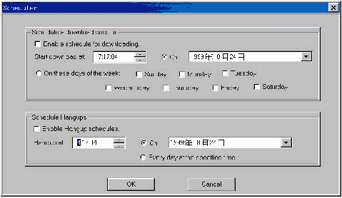 除了基本设置外,GS还提供了诸如定时、重拨号、工作完毕后的控制等进一步的设置。 1.定时。选择“Advanced”菜单下的“Schedule”(进度表)选项,可以进行具体设置,如:可以定制每一天的下载开始时间,也可以选择星期几。同时,你可以强行控制每天挂起的时间(图3)。