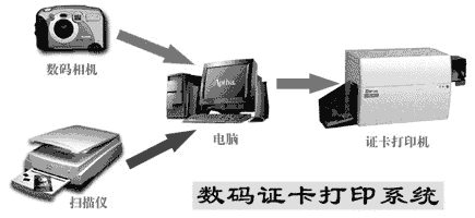 图2:  ·数码证卡打印机:可以接受从电脑传送过来的信息,直接在卡片上打印出各种文字与图像。小型证卡打印机的体积只比鞋盒略大一点,重量也仅六七公斤,所以携带起来非常方便。