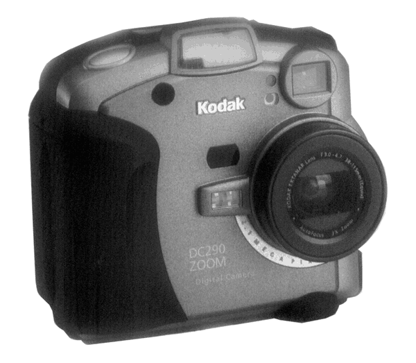 其实只要有较大容量的存储卡,用数码相机拍摄照片根本不必用电脑,只是输出照片时要使用电脑处理,然后由打印机输出,如今好了,有了独立于电脑的打印机后,数码相机也可以与电脑分手了。其实数码相机的独立是依靠打印机得来的,其本身在技术上并没有什么质的飞跃。相对于DC280,柯达DC290(如图4)本身也没有什么质的飞跃,只是由于其330万的像素使人刮目相看而已,当然,它采用的一些新技术也引人注目。柯达DC290相机有四种输出精度,一种是1792×1200(高分辨率),这对于10英寸照片的输出精度而言已经足够了,还有高精度输出2240×1500(超高分辨率),用来印制更大的照片而且决不会丢失细节,另外的1440×960(中分辨率)和720×480(标准分辨率)输出,用来拍摄网站上使用的图片已绰绰有余。DC290还具有三种照片拍摄方式设定,一种是静态拍摄;第二种是连续快拍,当选择中、高分辨率模式时,最快可连续拍摄5张照片,选用标准分辨率时则最快可达20张,速度可从每秒0.1张至每秒3张自行选择,连拍功能主要是针对以最快的速度拍摄最多的张数为目的而设计的;第三种是间隔定时,利用此功能可控制拍摄的张数及拍摄动作之间的间隔时间,此功能也适用于监视和安全性控制管理方面。