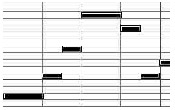 钢琴卷轴窗口是编辑MIDI时最常用和最方便的查看窗口,分为上下两个区。上面的为音符区,下面为属性值显示区。音符区左边有一个直观的钢琴键盘图,用鼠标点击可以听到声音效果。其竖直方向表示音高,从上到下依次降低,水平方向表示时间。在音符区上方有铅笔、画直线、擦除、播放几种鼠标状态可供选择。