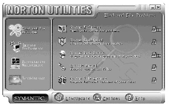 Norton Utilities的各项功能都集中在这个界面里。换句话说,维护系统或解决系统问题都可以通过这个界面来实现。具体的应用在后面有详细的解释。