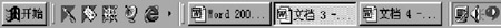 在Word 2000中,取消了多文档界面(MDI)方式,每个使用中的文档将自动生成单独的应用窗口。当你同时打开多个文档,在Windows的任务栏上将显示其图标(图3),因此,不必通过“窗口”菜单中的文件名选项来切换活动文档,只须在Windows的任务栏上像切换程序一样用鼠标单击,就可快速切换文档,大大的方便了多文档切换与相互操作。