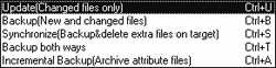 ·“Set Copy Direction”:这是一个子菜单项,下面有两条命令。分别为:“Source to Target”文件由目标文件夹向源文件夹复制和“Target to Source”文件由源文件夹向目标文件夹复制。不管文件原来的复制方向如何,使用后可强制文件按命令指示的方向进行复制。