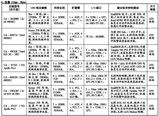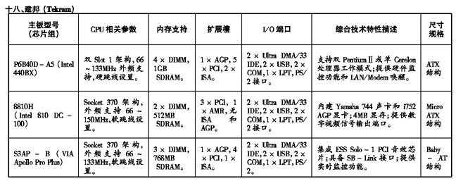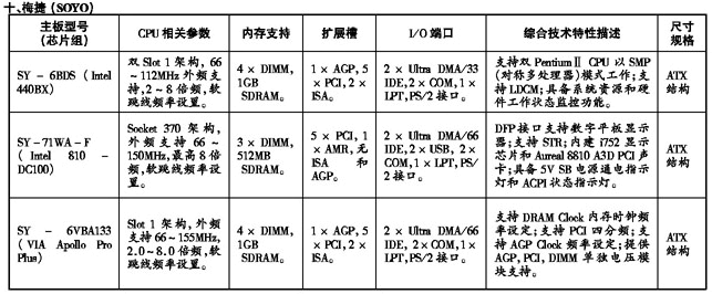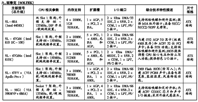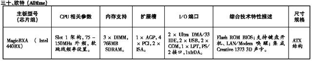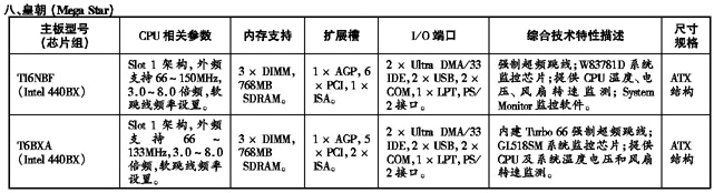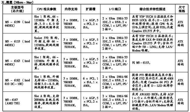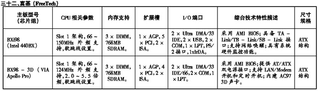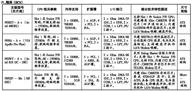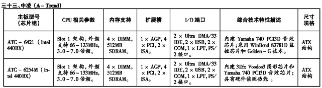 ’99流行主板性能参数速查手册