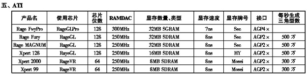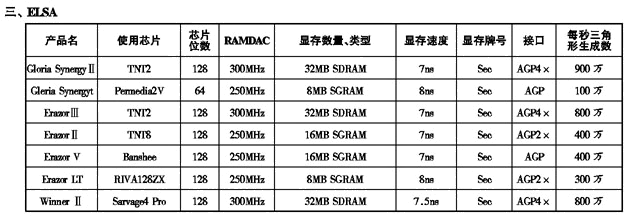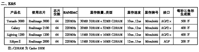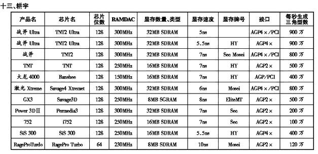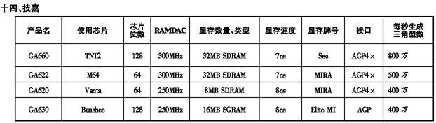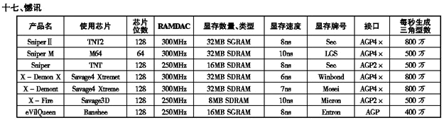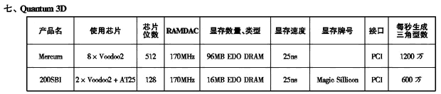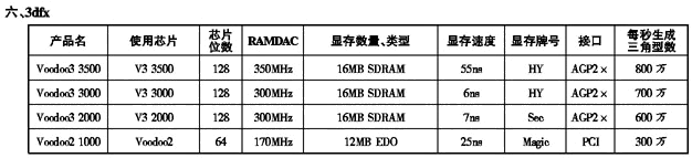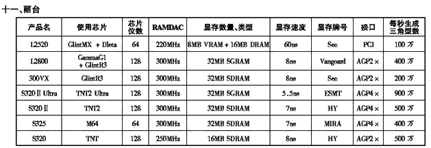 '99显示卡性能参数一览