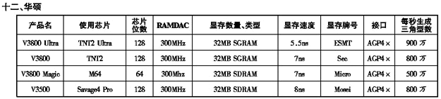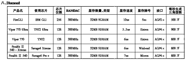 1999年可称为显卡年,在PC配件市场上,显卡所占份额空前提高,人们在购机时已充分认识到显卡的重要性,TNT1、Savage等名词已深深地印入发烧友的脑海中。显卡供应商亦在发生着巨大的变化,如继3DLabs收购研发,E&S收购Accel Graphics后,3dfx收购STB,S3收购了世界第三大显卡厂Diamond。显卡市场上,专业级显卡和娱乐级显卡的区分更加明显,三大专业卡研发公司——Intergraph、E&S、3Dlabs都集显卡生产研发为一体,实力非常雄厚,它们的产品所用显卡,芯片、板材根本不计成本,虽然性能很高,兼容性和稳定性很好,但价格昂贵非一般发烧友所能接受,而娱乐显卡类产品更是百花齐放。为了让广大发烧友们在挑选显卡时不要太为难,本文搜集了显卡产品的资料供读者参考。