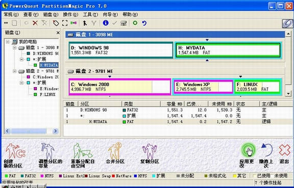 可能有的朋友会说,如果是新硬盘,还没安装操作系统,该怎么办啊。当然有办法,你可以下载Partition Magic的DOS简装版(http://it.yn.cninfo.net/soft/download/soft/25/49/76.shtml),拷贝到软盘上,然后用Windows 98启动盘启动系统,在DOS下运行Partition Magic就可以了。操作过程基本类似,奇奇就不啰嗦了。