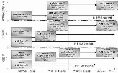 Athlon XP将是AMD的低端主力,2003第一季度将由Barton核心的新Athlon XP代替目前的Thoroughbred产品,Barton仍是0.13微米的产品,但是FSB从266MHz提高到333MHz,二级缓存也从256KB提升到512KB。