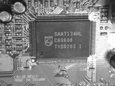 也许由于设计考虑周详,以及市场对电视卡需求不高之故,Fusion 878系列产品一直占据着市场的主流地位,这无疑对视频解码芯片的进一步发展是非常不利的。而且随着现有CPU处理能力的增强,视频应用的频繁,视频解码芯片需要有更大的突破。因此,飞利浦公司的Philips SAA713x(7130/7133/7134/7135)HL(见图2)以及Conexant公司的CX23880/1芯片先后推向了市场。前者于2002年1月通过MicroVision认证,后者则于2001年11月投产。2002年的3月,采用这两款芯片的电视卡产品开始投入市场。