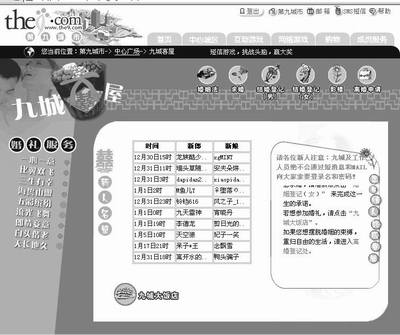 登录社区主页(http://city.the9.com),首先应该点击“中心城区→虚拟结婚→申请结婚”。此时,你就会进入一个喜气洋洋的页面──“9城喜屋”。