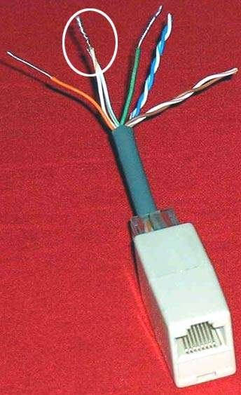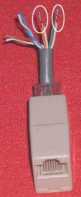 取带水晶头的两段5类双绞线 (要保证①②③⑥4根线与水晶头的簧片是接通的),将线头剥开。一段将橙白和橙线、绿白和绿线短接(见图2),称之为测线器A;另一段将橙白和绿白两线短接(见图3),称之为测线器B;将测线器B的橙线和绿线剥出线头以备测量使用。然后再配上一台能测量通断的简易万用表就可以了(如果你没有万用表,不妨用2节5号电池、一只发光二极管和一只470~1000Ω的电阻自行DIY一个仪器,也可以测量线路的通断)。