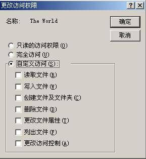 这时,只需为相应的用户或组赋予相应的权限即可。如果你对“只读”和“完全访问”两种权限不够满意,还可以在“添加用户”窗口中单击“自定义”按钮打开“更改访问权限”对话框,这里可以设置更多更高级的权限。