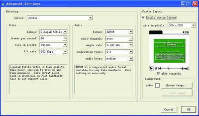 由于Palm的硬件限制,它的声音表现力非常有限,如果你使用Sony Clie系列Palm,则建议选择默认的Yamaha ADPCM或者Clie Audio。如果是其他类型的Palm,请选择ADPCM。