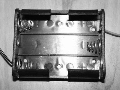 再用电烙铁把带插头的电源线焊在电池盒上相应的正负极接线弹簧和触片上,裸露部位用电工胶布或别的绝缘胶布包上,一个不是很难看的外置电池盒就完成了。