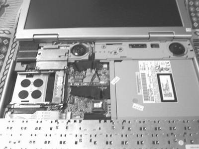 这时我发现这台笔记本电脑的扬声器是固定在从外框伸向内侧的一塑料平台上的。在拔下给扬声器供电的信号线后,拧下固定扬声器的螺丝,将塑料平台轻轻向左推就可取下左扬声器。不过取下右侧的扬声器时还真费了点劲。仔细研究了半天后发现在光驱和塑料平台的结合部有两个小卡子。用仪表起子顶开这两个小卡子,顺着固定在壳体上的滑槽向左轻推就可将右侧的扬声器取下。经过仔细观察发现两个扬声器都是3V公司的产品。于是笔者就在电子市场上买了两个与之结构相近的国产“红灯”牌扬声器。接下来就是用新的扬声器替代原来的扬声器。安装一切顺利。需要说明的是,所购买的扬声器的厚度要比原来的扬声器厚大约3毫米,为了防止扬声器和主板之间产生摩擦,笔者在扬声器和主板之间垫了层泡沫塑料(不能太大,太大会影响散热)。最后把各个零件一一装回。记住在安装CPU的热管散热系统时,固定热管散热系统的4颗螺丝钉要按对角线的顺序安装。并且不要先拧紧,待4颗螺丝都上完了后再把螺丝拧到合适的紧度。切记不要拧得太紧,否则压坏了CPU不但会有经济损失,而且很难在电脑市场上找到配件。