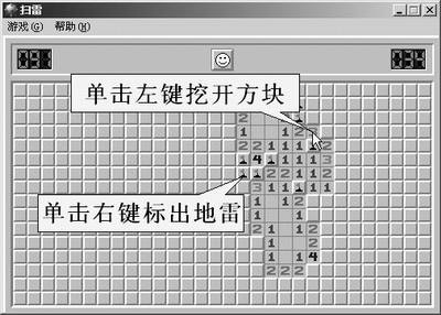 使用鼠标要比使用键盘简单得多,经过简单的练习你就会熟练使用它了。建议你使用Windows附带的几个小游戏来练习鼠标的操作,像《扫雷》,你可以用它来练习移动光标、单击、右击等动作。