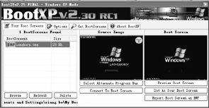 第一步:当然是由启动画面做起啦!这就要请出今天出场的第一件法宝──BootXP。这是一个能在Windows下很方便地修改Windows XP启动画面的软件。大家可到http://www.bootxp.net/download.htm下载,别忘了还要下载启动画面(http://www.bootxp.net/download.php:id=475)。