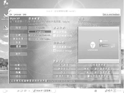 第二步:修改完了启动画面,接下来就到登录画面了。修改登录画面我们要请出第二件法宝──Style XP,大家可到http://www.tgtsoft.com/download.asp下载。然后再到www.themexp.org(http://www.themexp.org/view.php?type=login&catid=6)下载Longhorn的登录画面,接着就可以开始动工了。