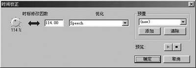 在“时间修改因数”中拖动小黑点,可设置时间变化的比例,“范围”为“50%~200%”,也就是说时间长短可调为原来的一半或原来的2倍。100%以上表示总时间变长,也就是速度变慢;100%以下表示总时间变短,当然速度也就加快了。我们也可以输入数字设定。