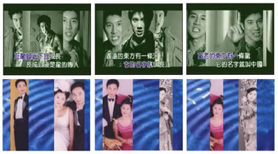 图1中的上排图片是王力宏歌曲《龙的传人》中连续闪烁的效果。此效果是通过一个坚形遮罩遮盖视频中的其他部分,只显示需表现的部分,而且可以在屏幕上同时显示两个以上的片段,这可是专业的视频编辑设备做的。其实用台式机也可以制作出这种效果,用Premiere6.0就可以做。当然还需要用Photoshgop做特有的遮罩,也不是太复杂,只要对Apple通道有一些了解就可以啦。图1下排是我用照片和背景做的同一个特效,怎么样、不错吧!其实你也可以把自己的照片来做一个“闪变”的特技效果。