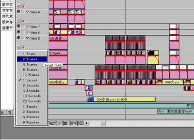 2.打开Premiere6.0。在这里需要知道帧的含义,因为编辑这个特效时需要对遮罩的长度进行操作。1秒为25帧,那么此例中我用的是5帧,也就是1/5秒,如果再短一些效果会更好。如图4可以控制时间线的单位,即帧、秒、时。此时对遮罩进行编辑最好选2帧(2 Frames),如图4。