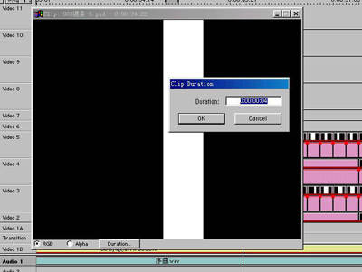 3.下面要控制遮罩的长短。最有效的方法就是双击时间线中遮罩文件,在遮罩文件下面有一个按钮,Duration可以控制素材及遮罩的长短。意思为:时:分:秒:帧,如图5。