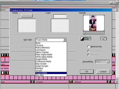 弹出Transparency Settings窗口,设置如图7,主要用到Key type中Track Matte,这个选项可以控制照片要显示的部分为上一轨道遮罩未盖部分。