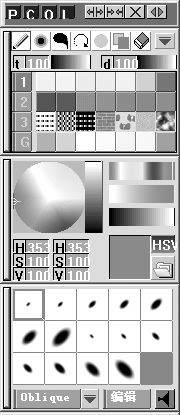 Pixia的基本功能由画面右侧的“工具板”所构成(如图2),工具板的主要功能,就集中在上方的四个字母:P(palette调色板)、C(color色彩)、O(pen笔调)、L(layer图层)。对于绘图来说,P和C的功能最重要,这两者就像画家手中的调色板和颜料,可以自由挥洒出你想要的图形。